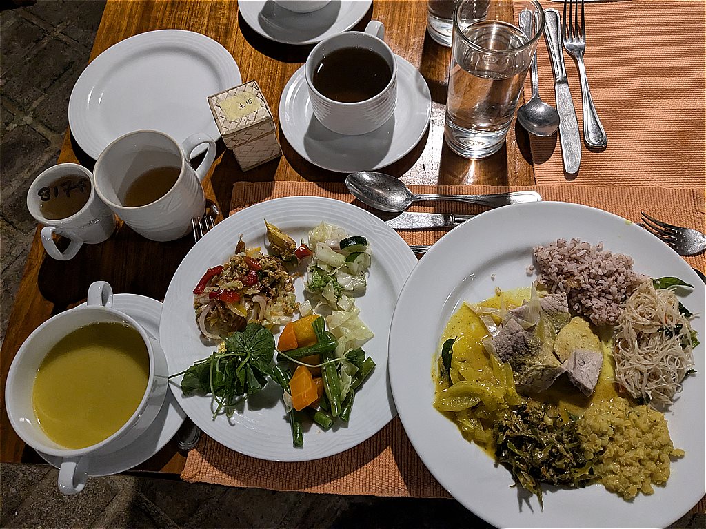 アルコールなし、カファイン飲料(コーヒーや紅茶)なし、肉や魚などもほとんどない。。と聞いていたので、出発前は不安がありましたが、どの食事もとってーーも美味しかった!!大満足🎵