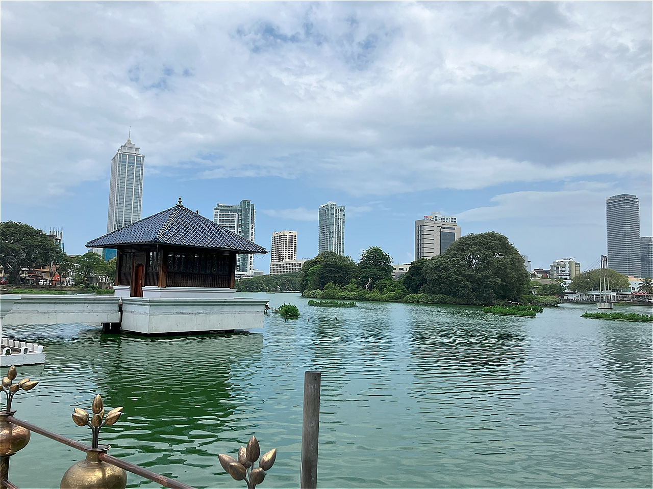 ガンガラーマ寺院からすぐの「シーマ・マラカヤ寺院」は、ジェフリー・バワが設計した、湖上に建つ寺院。